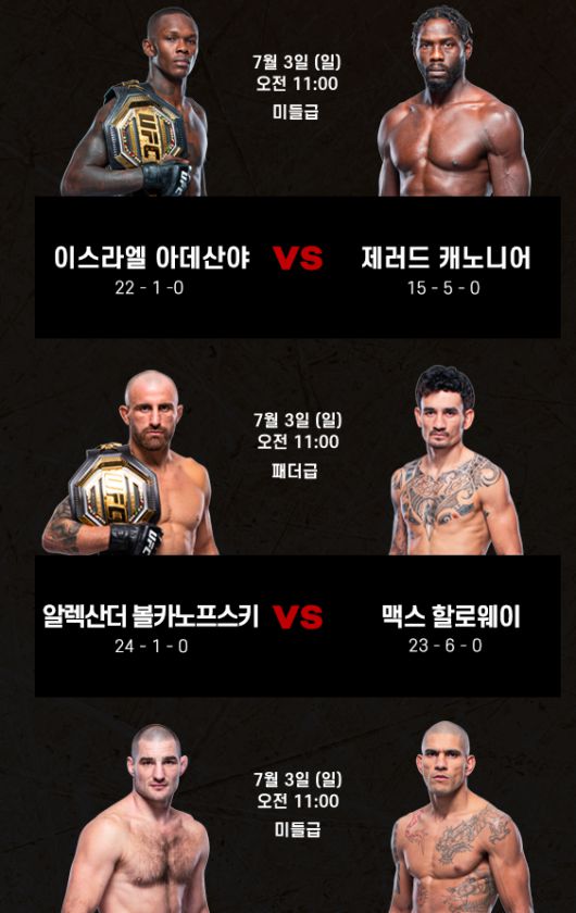 UFC 276: 아데산야 vs 캐노니어는 오는 3일 오전 9시부터 티빙(TVING)에서 생중계된다. 4일 오후 9시에는 tvN 스포츠에서 재방송된다.