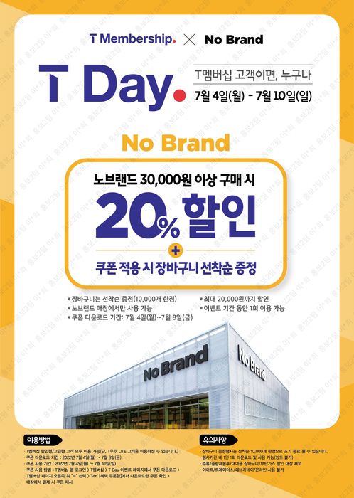 이번 행사는 노브랜드가 통신사와 진행하는 첫 협업으로 노브랜드 행사 규모로는 역대 최대 혜택이라고 이마트는 설명했다. 노브랜드 할인 쿠폰은 SKT T멤버십 애플리케이션(앱) 로그인 후 T Day 이벤트 페이지에서 다운받아 매장 결제 시 제시하면 된다. 다만 ‘T우주 LITE’ 고객은 이용이 불가능하다. 이마트 관계자는 “가성비 대표 주자인 노브랜드에 다양한 협업으로 할인 혜택까지 더해 상품 본연의 기능에 집중한 제품 가치를 더 부각시킬 계획”이라고 말했다.