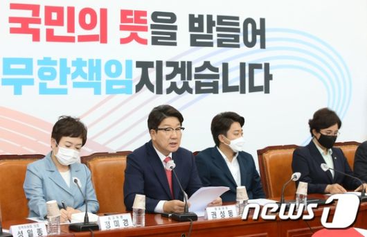 (서울=뉴스1) 허경 기자 = 권성동 국민의힘 원내대표가 4일 오전 서울 여의도 국회에서 열린 최고위원회의에서 모두발언을 하고 있다. (공동취재) 2022.7.4/뉴스1 |