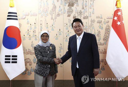 윤석열 대통령과 악수하는 할리마 야콥 싱가포르 대통령 |