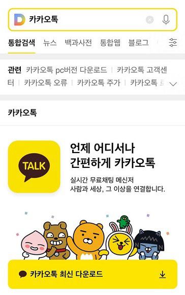 -카카오, 다음 검색 통해 카카오톡 최신 버전 다운로드 안내
