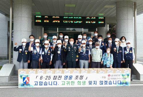(안양=연합뉴스) 김인유 기자 = 육군 수도군단은 5일 6·25 참전용사 12명을 부대로 초청해 '사랑의 희망박스'를 전달했다.