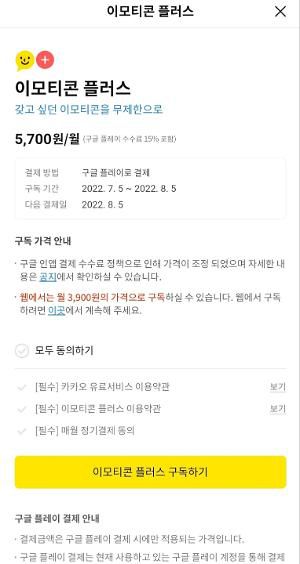카카오는 구글 인앱결제 정책이 시작된 지난달 보다 앞선 시점에 웹 결제 아웃링크 방식을 추가했다는 입장이다. 이모티콘 플러스 등 구독 상품을 기존 가격대로 구매할 수 있는 방법을 안내할 필요가 있다고 판단했다는 것. 이후 5월 말에 카카오톡 업데이트를 진행했지만, 플레이스토어 업로드를 거절 당했다고 했다.
