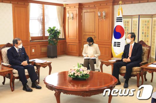 (서울=뉴스1) 박지혜 기자 = 한덕수 국무총리(오른쪽)가 5일 오후 서울 종로구 정부서울청사에서 도쿠라 마사카즈 일본 경제단체연합회장과 대화를 나누고 있다. (총리실 제공) 2022.7.5/뉴스1pjh2580@news1.kr[© 뉴스1코리아(news1.kr), 무단 전재 및 재배포 금지]