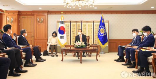 [서울=뉴스핌] 한덕수 국무총리가 5일 오후 서울 종로구 정부서울청사에서 일본 경제단체연합회 회장단과 면담하고 있다. [사진=국무총리실] 2022.07.05 photo@newspim.com 저작권자(c) 글로벌리더의 지름길 종합뉴스통신사 뉴스핌(Newspim), 무단 전재-재배포 금지
