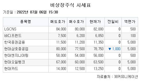 현대중공업 계열 조선업체 현대삼호중공업은 호가 7만8750원(-1.25%)으로 5주 최저가를 기록했다.