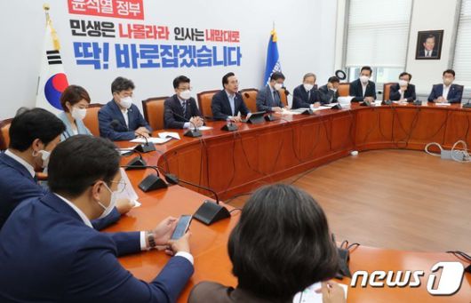(서울=뉴스1) 이재명 기자 = 박홍근 더불어민주당 원내대표가 7일 오전 서울 여의도 국회에서 열린 정책조정회의에서 발언하고 있다. (공동취재) 2022.7.7/뉴스1