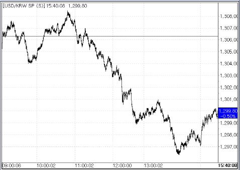7일 서울외국환중개에 따르면 환율은 전 거래일 종가(1306.30원) 대비 6.50원 하락한 1299.80원에 마감했다. 이날 환율은 전일 역외 환율 하락을 따라 전일 대비 1.30원 내린 1305.0원에 출발했으나 글로벌 달러화 강세에 연동해 장중 1308.50원까지 올랐다가 오전 11시께 이후 점차 낙폭을 키워 1300원 아래로 내렸다. 환율이 1300원 아래로 떨어진 것은 지난 4일(1297.10원) 이후 사흘만이다.