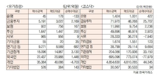 [표]유가증권·코스닥 투자주체별 매매동향( 7월 7일-최종치)