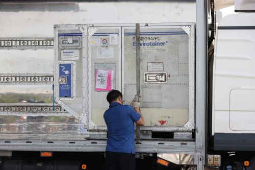 8일 오후 인천국제공항 화물터미널에서 관계자가 이날 도착한 원숭이두창 치료제 ‘테코비리마트’를 수송차량에 싣고 있다./연합 |