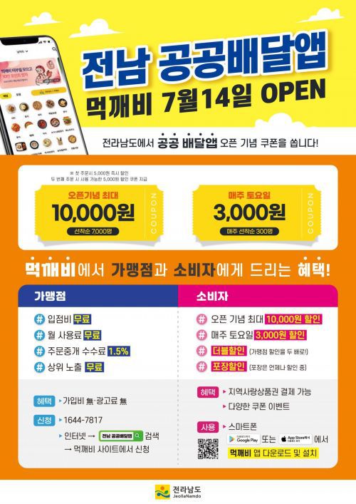 [아시아경제 호남취재본부 김춘수 기자] 전남 담양군은 전남도에서 오는 14일 출시하는 민관협력형 공공배달앱 ‘먹깨비’의 홍보와 가맹점 모집에 들어갔다고 11일 밝혔다.
