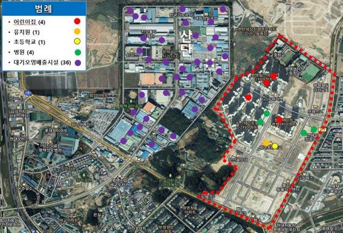 이 구역에는 어린이집 4곳, 유치원 1곳, 경로당 3곳이 있으며, 인접한 평택일반산단에는 대기오염 배출시설 36곳이 가동 중이다.