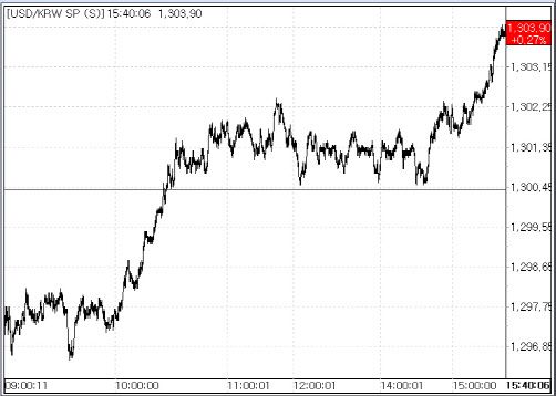 11일 서울외국환중개에 따르면 환율은 전 거래일 종가(1300.40원) 대비 3.50원 상승한 1303.90원에 마감했다. 이날 환율은 역외 환율 하락을 따라 전일 대비 3.40원 내린 1297.0원에 출발한 뒤 오전 10시반께 1300원대로 상승 반전했다. 이후 상승폭을 점차 키워 장중 한 때 1304.10원까지 오르기도 했다. 이는 2거래일 연속 1300원대로 마감한 것이다.