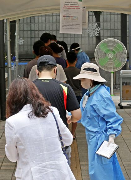 코로나19 유행이 유럽을 중심으로 증가세로 돌아선 가운데 국내에서도 지난 6일 2만명에 육박하는 신규 확진자가 발생했다. 이날 서울 서초구보건소 선별진료소에서 시민들이 검사를 받기 위해 줄을 서 있다. 연합뉴스 |