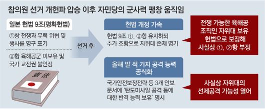 日 ‘자위대 헌법 명기-공격 허용’ 땐 유사시 한반도 개입 길 터