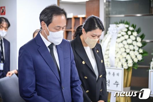 (서울=뉴스1) = 우상호 더불어민주당 비상대책위원장이 12일 오전 서울 종로구 주한일본대사관 공보문화원에 마련된 아베 신조 전 일본 총리 분향소를 찾아 조문하고 있다. (더불어민주당 제공) 2022.7.12/뉴스12expulsion@news1.kr[© 뉴스1코리아(news1.kr), 무단 전재 및 재배포 금지]
