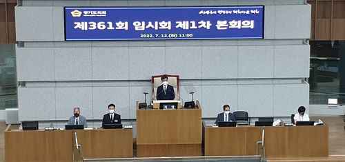 이에 따라 의장 직무대행인 민주당 염종현(4선·62세) 의원은 본회의 개의 직후 "교섭단체 대표들의 합의로 정회를 선포한다"고 밝혔다. 지방자치법에 따라 최다선의 연장자인 염 의원이 첫 임시회의 의장 직무대행을 맡았다.