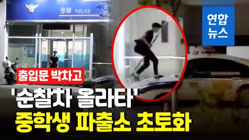 지난 11일 새벽 2시 서울 강동구 고덕파출소 앞에서 술 취한 중학생이 파출소 출입문을 박차고 들어갔다 뛰쳐나와 순찰차 지붕 위에 올라가 난동을 부렸습니다.
