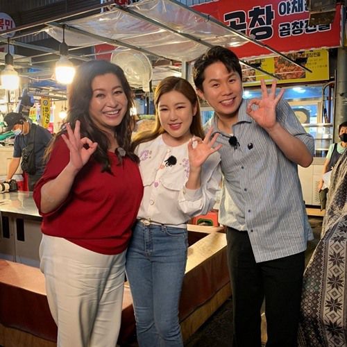이번에 공개된 사진 속 송가인은 KBS 2TV 예능 프로그램 '오케이? 오케이!' 촬영현장에서 오은영 박사, 양세형과 인증샷을 남기고 있다.