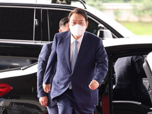 윤석열 대통령이 15일 오전 서울 용산 대통령실 청사로 출근하고 있다. (사진=연합뉴스) |