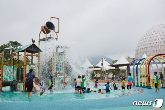 국립부산과학관 야외전시장 물놀이 시설에서 아이들이 물놀이를 하고 있다(국립부산과학관 제공)© 뉴스1 |