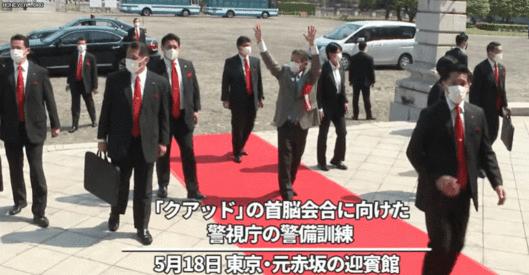 15일 트위터와 온라인 커뮤니티 등에는 지난 5월18일 도쿄 영빈관 앞에서 열린 경시청 경비부의 훈련 영상이 공유됐다. 당시 경시청은 같은달 24일 도쿄에서 열리는 ‘쿼드(Quad·미국, 일본, 호주, 인도 4개국 안보협의체)’ 4국 정상회의를 앞두고 모의 훈련을 진행했다.