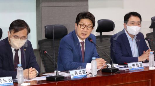 권성동 국민의힘 당 대표 직무대행 겸 원내대표가 15일 오후 서울 여의도 국회 의원회관에서 열린‘윤석열정부 성공적인 규제개혁 방안 정책세미나’에서 축사를 하고 있다. 2022.07.15 뉴시스 |