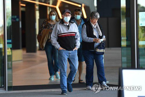 마스크를 쓴 호주 브리즈번 여행객들 |