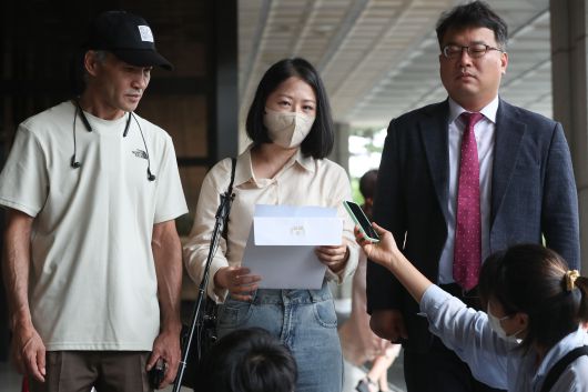 서해에서 북한군에 의해 피살된 해양수산부 공무원의 형인 이래진 씨가  지난달 29일 서울 서초구 서울중앙지검에서 고발인 조사를 앞두고 기자들의 질문에 답하고 있다. 이날 유족은 윤석열 대통령이 고(故) 이대준 씨 아들에게 보낸 편지를 공개했다. /뉴스1