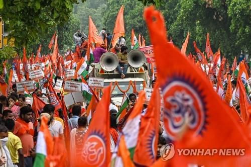 종교 갈등으로 한 인도 힌두교도가 참수 피살되자 항의에 나선 힌두교 단체. |
