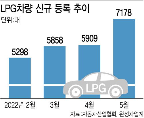 17일 완성차업계와 한국자동차산업협회에 따르면 올해 들어 LPG 차량의 신규 등록 대수(판매량)가 4개월 연속 증가하고 있다. LPG차량의 신규 등록은 올해 2월 5298대를 기록한 뒤 △3월 5858대 △4월 5909대 △5월 7178대 등으로 증가했다.