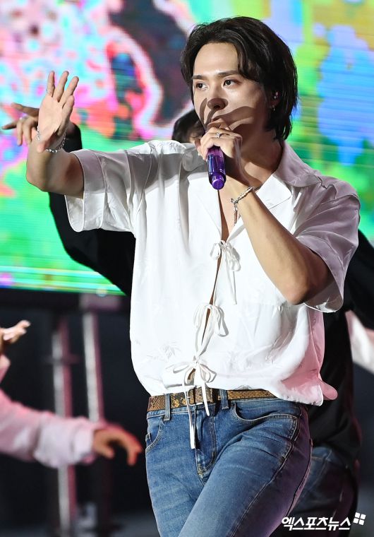 (엑스포츠뉴스 김한준 기자) 17일 오후 서울 삼성동 코엑스 동측광장에서 G-KPOP 콘서트가 열렸다. 이날 G-KPOP 콘서트에 참석한 하이라이트 손동운이 멋진 공연을 선보이고 있다. 김한준 기자 kowel@xportsnews.com