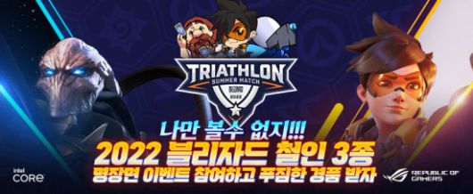 또, 대회는 끝났지만 블리자드 철인 3종 하계 대회를 즐겁게 시청한 팬들을 위한 이벤트는 계속 진행 중이다. 21일까지 철인 3종 이벤트 페이지에서 경기 명장면을 댓글로 남기면 인텔 코어 프로세서 기반 ASUS ROG 게이밍 노트북, 블리자드 공식 굿즈 등 다양한 경품에 당첨될 기회를 얻을 수 있다.