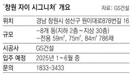 GS건설은 창원시 성산구 원이대로878번길 일대에 짓는 ‘창원 자이 시그니처’를 분양한다고 18일 밝혔다. ‘가음8구역’ 재건축을 통해 공급되는 단지로 8개 동(지하 2층∼지상 30층), 총 786채 규모다. 전용 59m² 279채, 75m² 239채, 84m² 268채로 이뤄졌다. 이 중 453채가 일반분양 물량으로 풀린다.