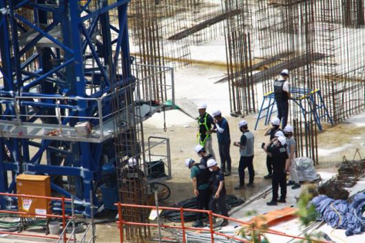 지난 14일 경북 포항의 한 아파트 공사현장에서 추락사고가 발생해 고용노동부 관계자들이 현장을 둘러보고 있다. 건설노동자들은 산업재해뿐만 아니라 일상적인 중간착취에도 시달린다. 뉴시스 |