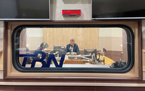 라디오 캠페인 음성 메시지를 녹음하고 있는 배하준 오비맥주 대표 |