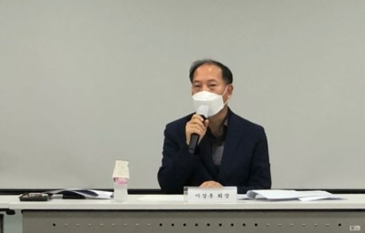 이상훈 신용보증재단중앙회 회장이 19일 오전 서울 여의도 중소기업중앙회에서 열린 신용보증재단중앙회 기자간담회에서 설명하고 있다. 신보중앙회 제공. |