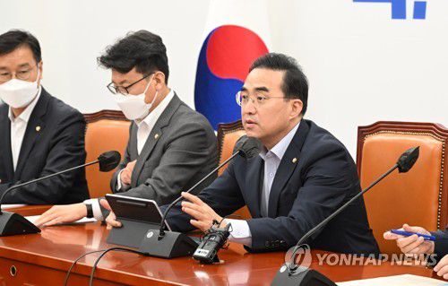 박 원내대표는 대통령실의 '사적채용' 논란에 대해서도 "이미 도를 넘어섰다"며 "(국민들은) 선관위원장인 우 사장이 아들 명의로 고액 후원을 했을 것이란 합리적 의심뿐 아니라 (우 사장 아들이) '아버지 찬스'와 1천만 원 후원으로 대통령실에 입성했다고 생각한다"고 비판했다.