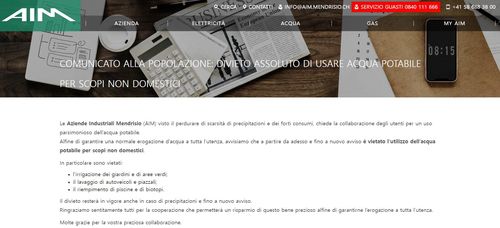 19일(현지시간) 스위스 남부 티치노주(州) 멘드리시오 지방정부가 홈페이지를 통해 공지한 지침에 따르면 멘드리시오 일대와 인근 소도시인 바사지오 트레모나, 살로리노 등 지역에서 수돗물 사용이 제한되고 있다.