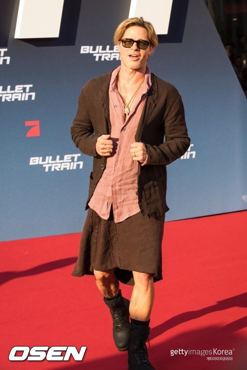 [OSEN=최나영 기자] 배우 브래드 피트가 치마를 입고 시사회 공식석상에 등장해 시선을 모았다.