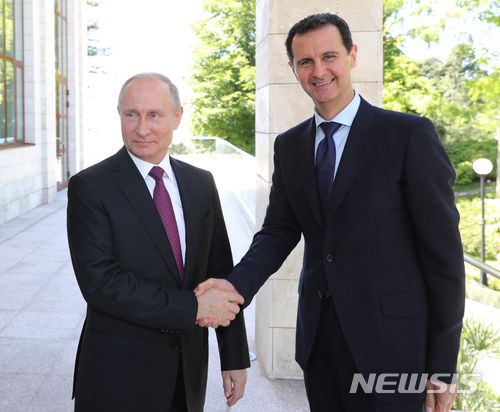 【소치=AP/뉴시스】2018년 5월 정상회담한 블라디미르 푸틴 러시아 대통령(왼쪽)과 바샤르 알 아사드 시리아 대통령. 2018.5.17. |