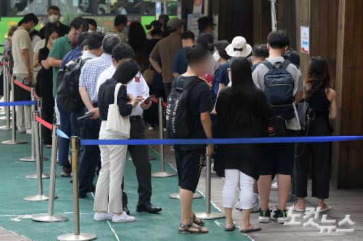 코로나19 선별검사소를 찾은 시민들이 검사를 받기 위해 줄을 서 있다. 박종민 기자