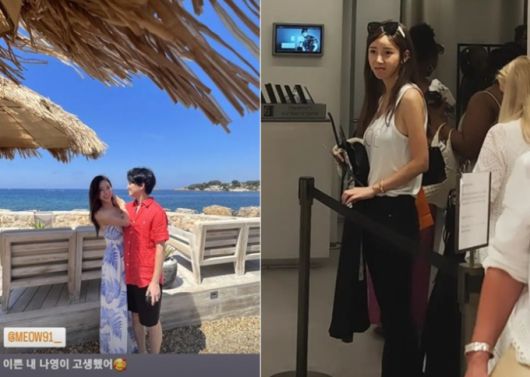 최근 유럽 여행을 마친 두 사람은 사진에서 바다를 배경으로 나란히 붙어 다정한 포즈를 취하고 있다. 전선욱 작가가 애정 넘치는 눈빛으로 야옹이를 바라보는 모습과 신혼부부 같은 분위기가 돋보인다.