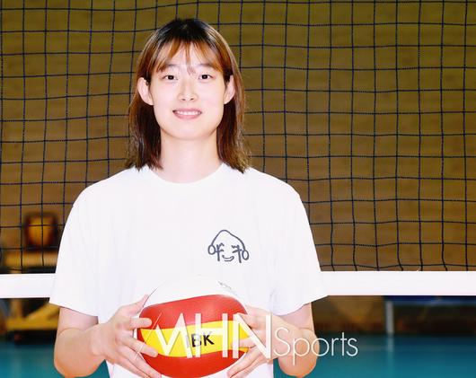 IBK기업은행 최정민이 인터뷰에 앞서 포즈를 취하고 있다ⓒMHN스포츠 이지숙 기자