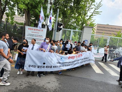 (서울=연합뉴스) 이상서 기자 = 이집트에서 온 난민 신청자들이 난민 심사 시스템을 개선하고, 인종차별을 중단하라고 법무부에 요구했다.