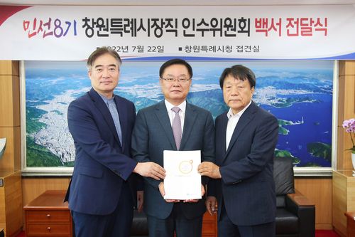 조영파 인수위원장은 "45일간의 인수위 활동과 민선 8기 청사진을 백서에 모두 담아보려고 노력했다"며 "민선 8기의 시정비전 '동북아 중심도시 창원' 실현을 위한 이행계획들이 성공적으로 추진되기를 바란다"고 말했다.