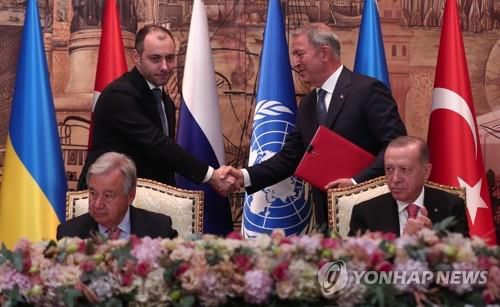 AFP와 로이터, 타스 통신 등에 따르면 협상 참가 4개 대표단은 튀르키예 이스탄불 돌마바흐체 궁전에서 유엔이 제안한 흑해를 통한 곡물 수출 협상안에 최종 서명했다.