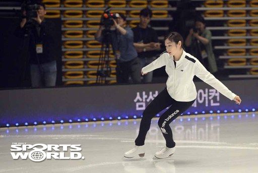 사진 설명 : 김연아가 '올댓스케이트 2019 아이스쇼' 공개리허설에서 몸을 풀고 있다.