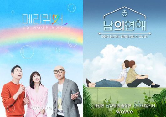 웨이브가 각각 지난 8일과 15일 공개한 퀴어 예능 '메리 퀴어'(왼쪽)와 '남의 연애' 포스터. [사진 웨이브] |