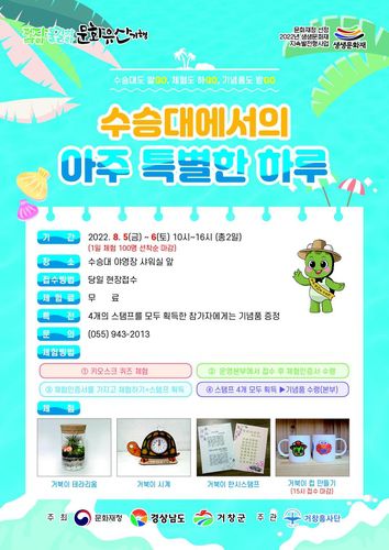 거창군 관계자는 "수승대에서 시원한 물놀이와 다양한 체험을 즐기면서 문화재로서 수승대의 우수성을 알게 되고 문화유산에 대한 인식을 높이는 기회가 될 것"이라고 말했다.